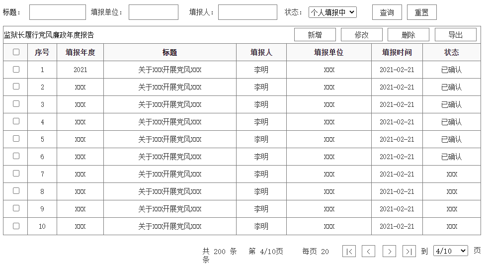 對監(jiān)獄單位日常開展監(jiān)督等情況的記錄以及日常工作數(shù)據(jù)的報告,系統(tǒng)能自動對更監(jiān)獄單位的日常監(jiān)督數(shù)據(jù)進行匯總。