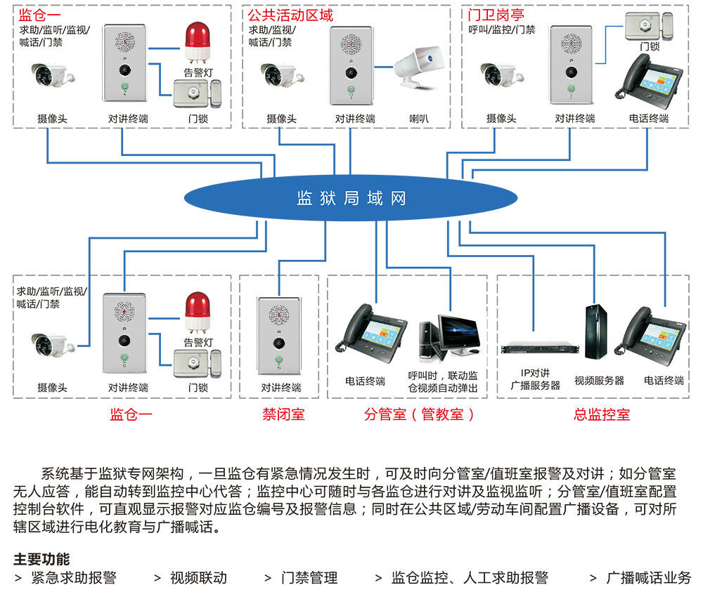 神州科技公司監(jiān)獄網(wǎng)絡(luò)廣播可視對(duì)講系統(tǒng)的應(yīng)用,適合于監(jiān)獄內(nèi)播放不同內(nèi)容的需求,能夠向服刑人員提供專業(yè)豐富的科學(xué)、教育、法律及文化知識(shí)??筛鶕?jù)設(shè)置,每天定時(shí)或循環(huán)播放節(jié)目,自動(dòng)化程度高,節(jié)省人力物力,即使在監(jiān)獄工作人員繁忙時(shí)間也能輕松應(yīng)對(duì),有效提升了監(jiān)獄細(xì)致、人性化的管理,能使服刑人員對(duì)科學(xué)、教育、法律及文化知識(shí)印象更加深刻。