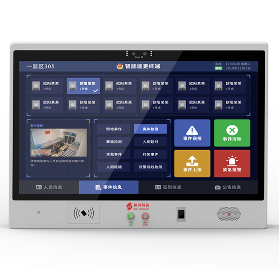 監(jiān)室外民警業(yè)務(wù)終端不僅實(shí)現(xiàn)了傳統(tǒng)管教助手、電子巡更、電子水牌等系統(tǒng)功能,還整合了民警各崗位日常工作所涉及的監(jiān)室管理、被監(jiān)管人員管理、帶入帶出管理、民警巡視管理、防誤放身份核實(shí)、緊急報(bào)警等諸多功能于一身。